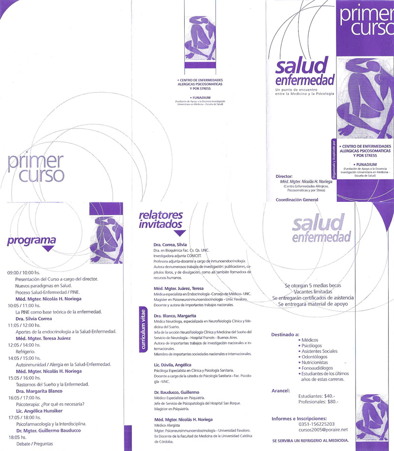 Este grupo de trabajo ha realizado las siguientes actividades docentes y de información: En el año 2005, realizamos dos cursos, uno dedicado a la Psiconeuroinmunoendocrinología y su impacto en la clínica, haciendo hincapié en los trastornos del sueño, contando con la presencia de la Dra. Blanco, experta en esa temática y con muy buen marco de asistentes. Luego, en el mes de octubre de ese mismo año, realizamos otro jornada dedicada a LAS DEPRESIONES, espacio en el que se trató a las mismas en sus aspectos neurobiológicos y psicoterapéuticos, tanto en adultos como en niños. También este encuentro se desarrolló con un buen marco de asistentes.